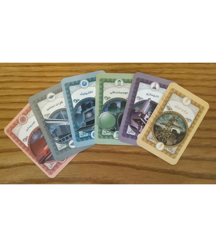 (5) از هر یک از 6 دستهی مختلف کارتهای سهام، یک کارت کشیده و به هر بازیکن -به شکل تصادفی- یک کارت بدهید. کارت یا کارتهای اضافی را دوباره با سایر کارتهای سهام، بُر زده و ستون کارتهای بازار سهام را تشکیل دهید؛ بازار سهام را -بهپُشت- در کنار صفحهی اصلی بگذارید. بازیکنان، کارتهای سهامی را که دریافت کردهاند، در صفحهی بازی خود، در قسمت پوشهی سهام قرار میدهند. این سهام (کارت) هیچ تفاوتی با بقیهی سهامی که در طول بازی به دست خواهید آورد، نخواهد داشت!