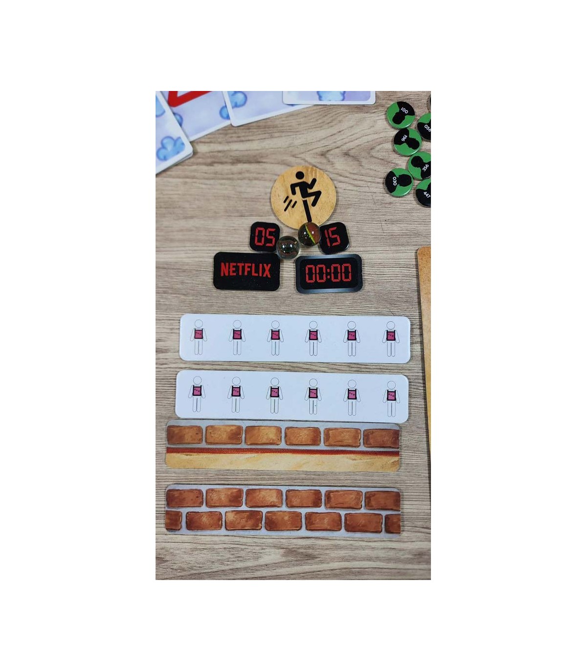 هر بازیکن یک رنگ را انتخاب میکند و کارت های بازیکن ( 6 عدد ) و توکنهای تیم ( 12 عدد ) را میگیرد . بازی را با 7 توکن تیم شروع کنید . 5 توکن دیگر را تا زمانی که به آنها نیاز ندارید، کنار بگذارید .