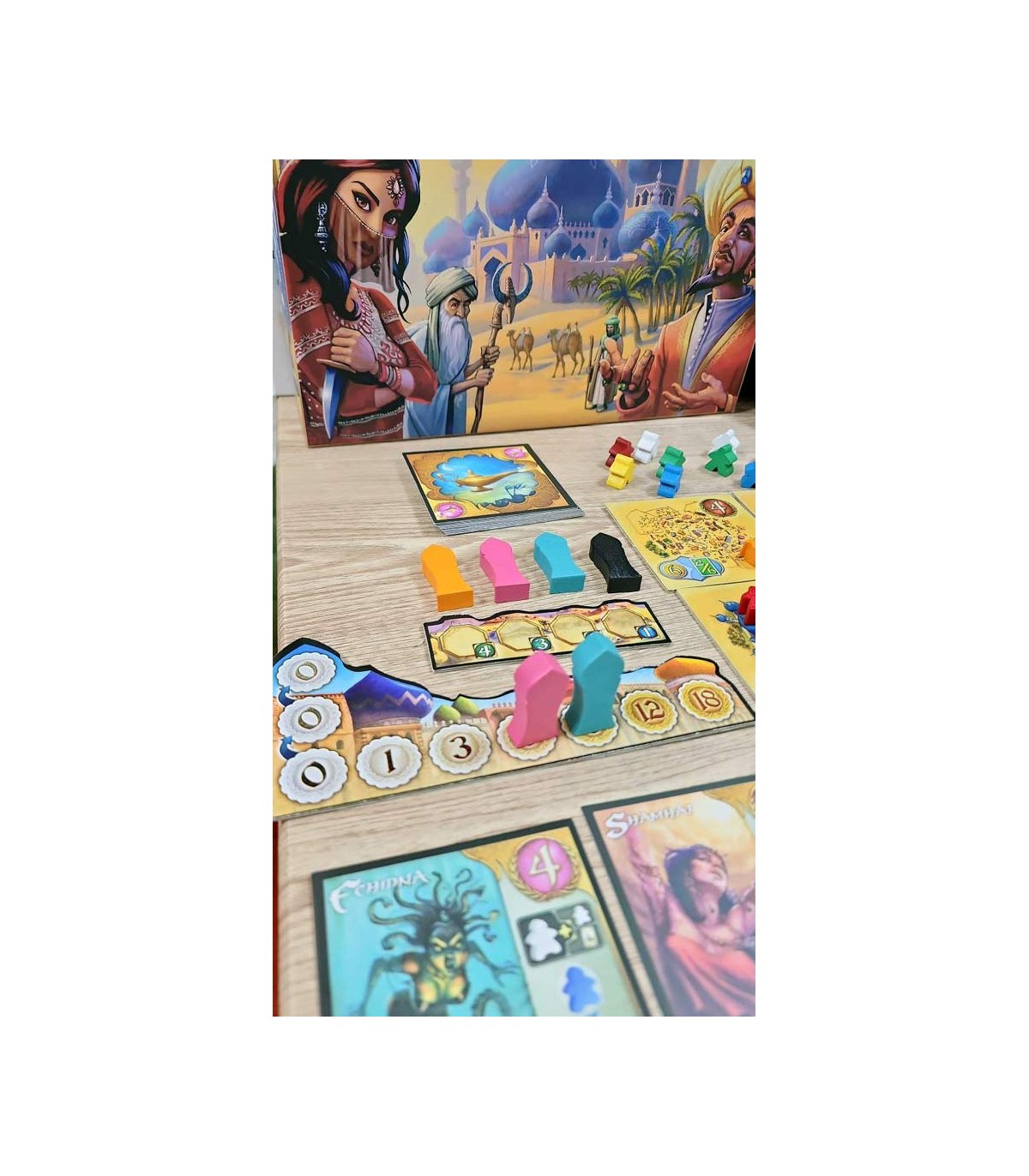 داستان و تِم بازی برای ما ایرانی ها بدلیل آشنایی با داستان های 1001 شب و همچنین علائم آشنای دیگه ای در بازی مثل اسامی آشنای کارت های جن ها، نخل، شتر و غیره باعث جذابیت بیشتر این بازی از حیث داستانی برای ما خواهد بود.