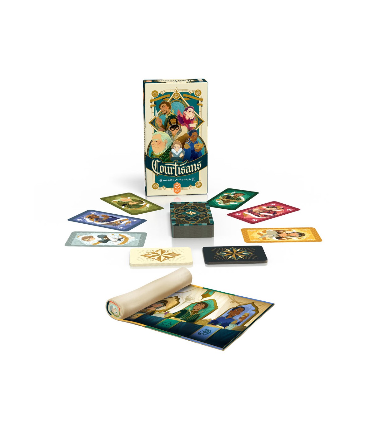 در بازی کورتیسانس، در هر نوبت سه کارت دریافت میکنید و همان سه کارت را باید بازی کنید. یکی از این کارتها بر روی میز ملکه قرار میگیرد تا نفوذ یک خانواده را—چه مثبت و چه منفی—تحت تأثیر قرار دهد. دو کارت دیگر، یکی در قلمرو خودتان و دیگری در قلمرو یکی از بازیکنان حریف بازی میشوند. این کارتها، بسته به جایگاه خانوادهشان، ممکن است ارزش مثبت یا منفی داشته باشند. اگر میخواهید بیشترین امتیاز را کسب کنید و پیروز شوید، باید هوشمندانه تصمیم بگیرید که هر کارت را در کجا قرار دهید.