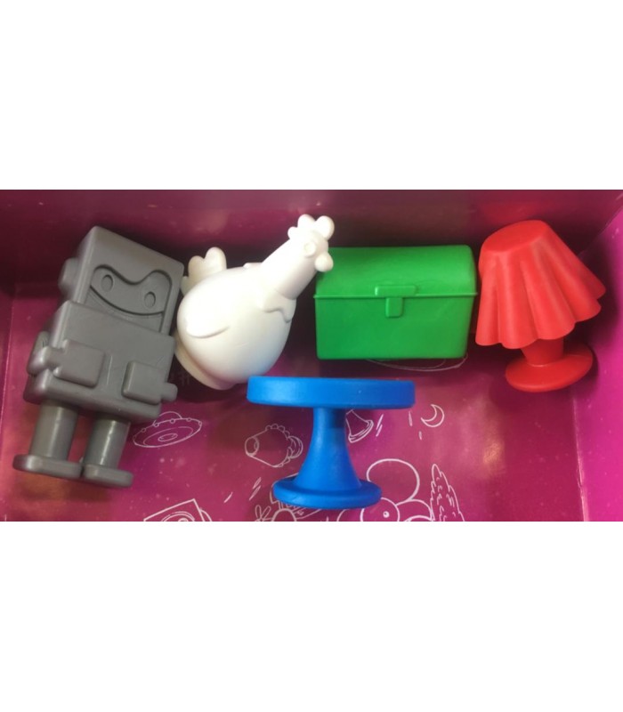 برای شروع بازی کارت ها را بر بزنید و به پشت در زمین بازی بگذارید و سپس نمونک های مرغ سفید، ربات خاکستری، صندوچه سبز، میز آبی و آباژور قرمز را وسط زمین بازی بگذارید. یکی از بازیکنان کارت رویی را برمی گرداند و همه بازیکنان باید به سرعت نمونکی که هدف کارت است را از زمین بازی بقاپند.