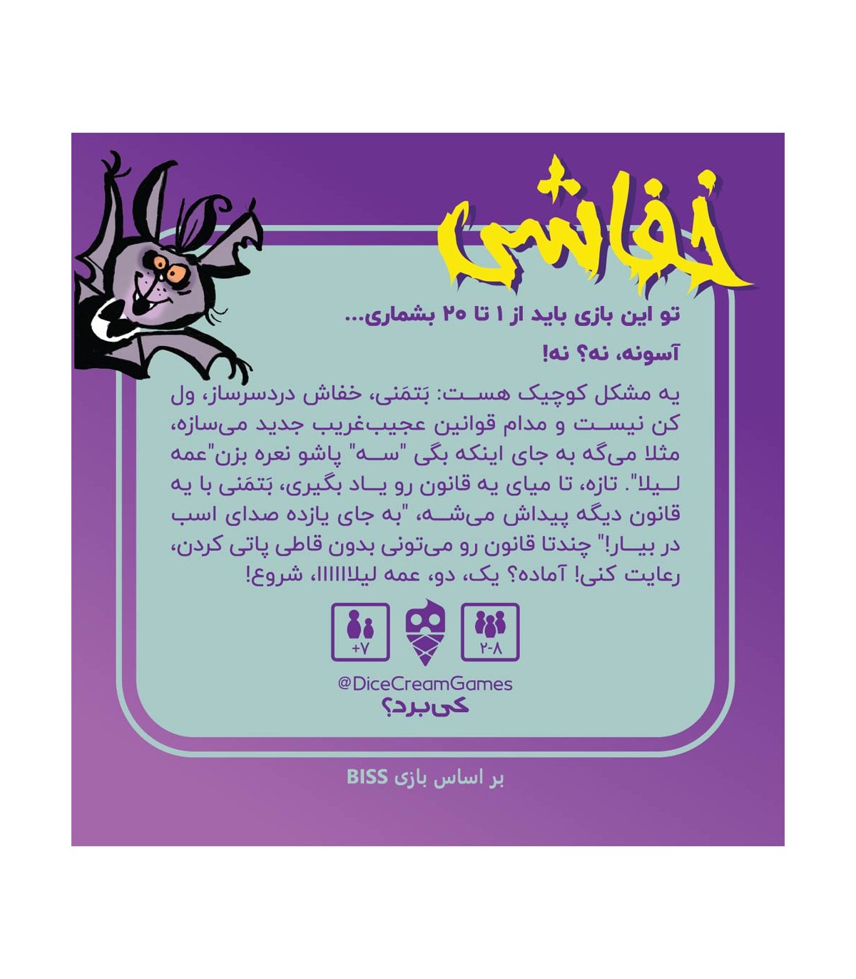 یک، دو، سه، چهار، هُپ! یادته؟ این بازی از هُپ خیلی چالشی تره، چرا؟ چون بتمنی، خفاش بازی به جای هُپ گفتن، ازت کارهای عجیب و غریب میخواد، مثلا میگه که صدای گاو در بیار!