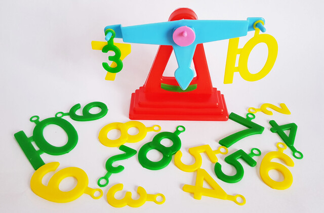 ترازوی حسابگر یک وسیله ی کمک آموزشی و جالب می باشد. این ترازو مفاهیم ریاضی را با بازی به کودک آموزش می دهد. این بازی شامل 2 سری کامل اعداد از 1 تا 10 می باشد که هر کدام از اعداد با توجه به ارزش عددی شان دارای وزن بخصوصی می باشد. مثلا شما می خواهید به کودک آموزش دهید که 1+1=2 می شود. عدد 2 را در یک سمت ترازو و دو تا 1 را در سمت دیگر ترازو آویزان می کنید در این حالت ترازو به تعادل می رسد. یا اینکه می خواهید مفهوم کوچکتر وبزرگتر را به کودک آموزش دهید. مثلا 7بزرگتر از 5 را می خواهید روی ترازو نشان دهید.