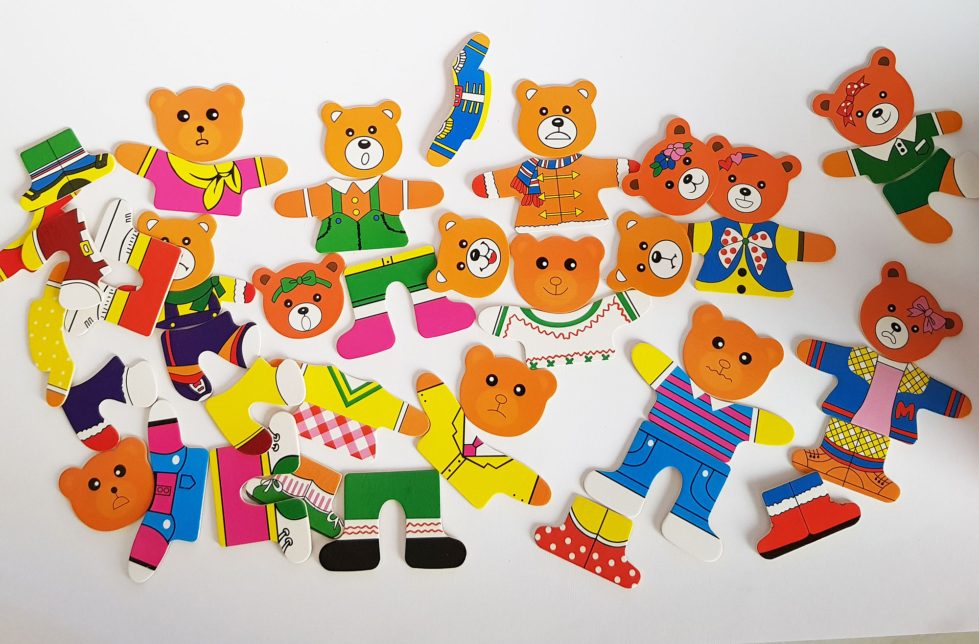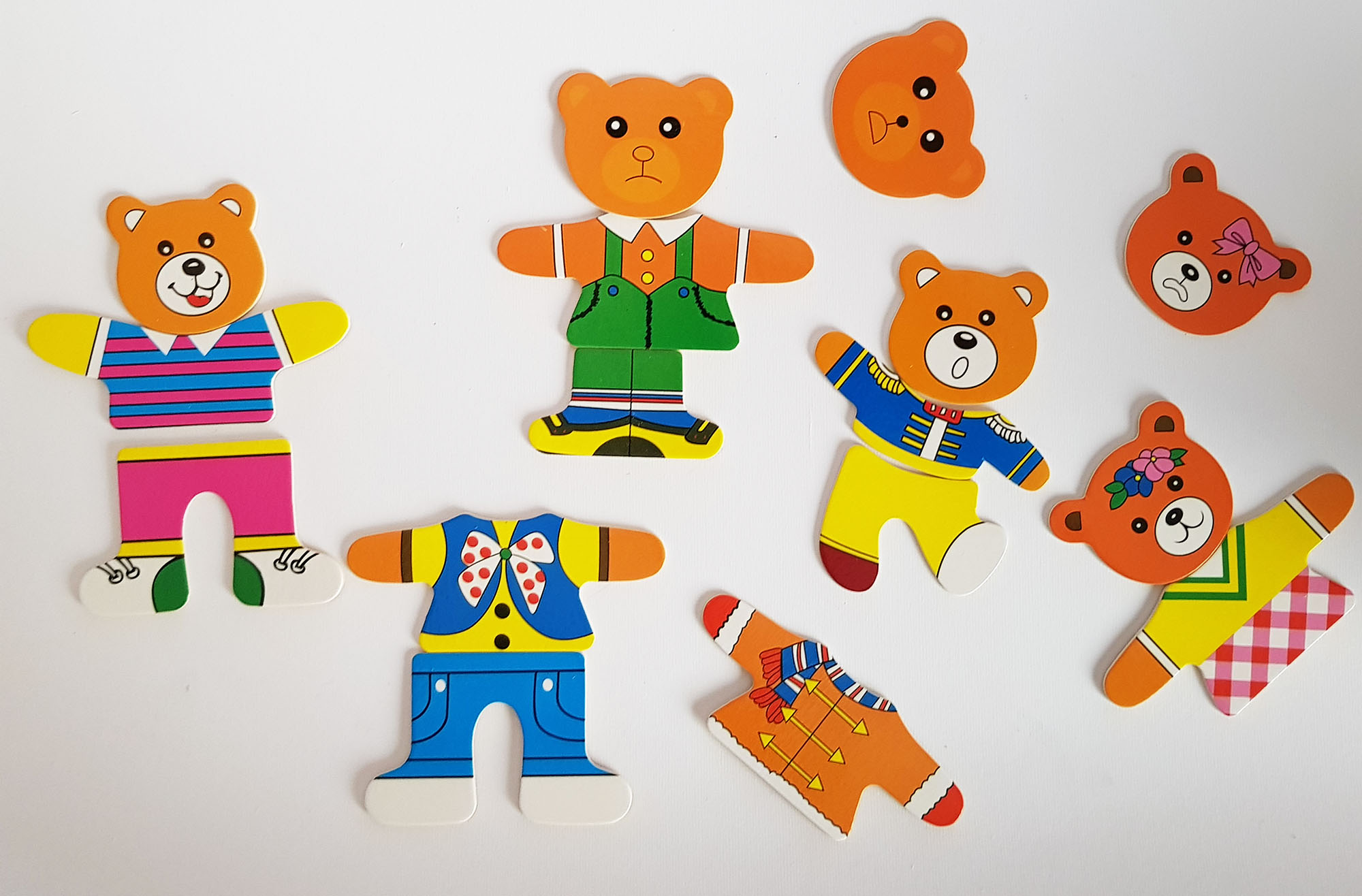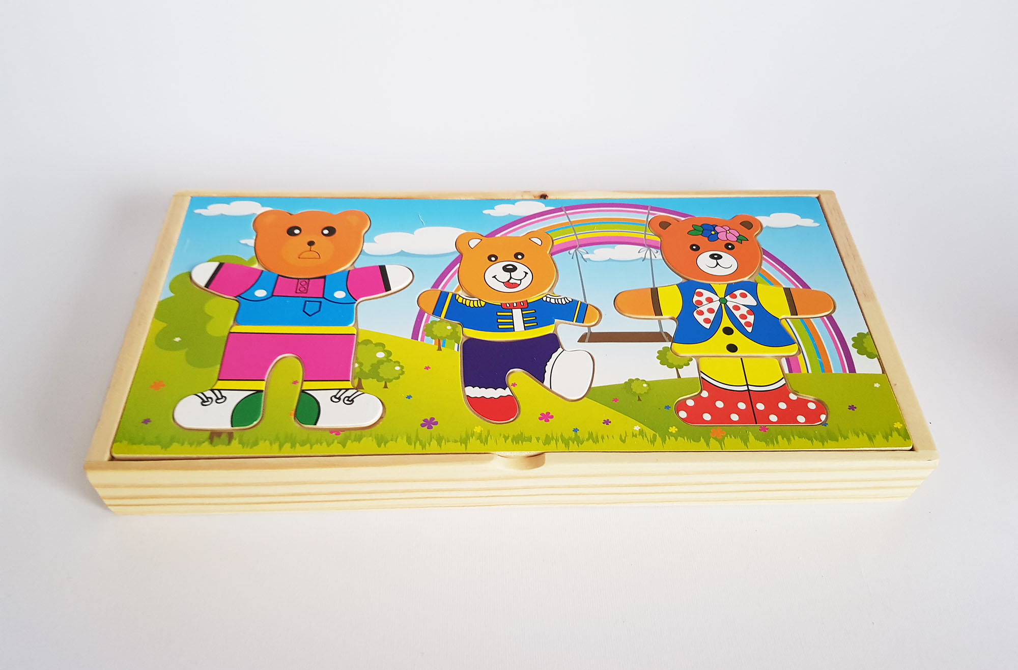 جنس پازل ها از جنس چوب طبیعی و بی خطر است. اسباب بازی پازل چوبی ست های لباس خرسی کلی فرصت آموزشی در اختیار بچه های عزیز شما قرار می دهد.
