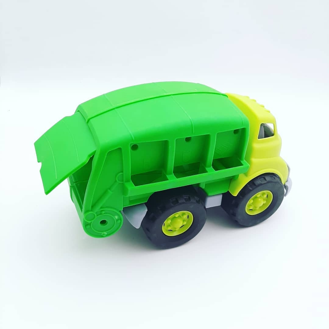 کامیون بازیافت(حمل زباله )😍🤩یک اسباب بازی از جنس پلاستیک می باشد که دارای قابلیت های خوبی است از جمله بالا رفتن قسمت حمل زباله و باز و بسته شدن درب پشتی حمل زباله که با دست حرکت می کند . این کامیون از مواد اولیه درجه یک ساخته شده است و دارای کیفیت خوبی است. این ماشین پلاستیکی اسباب بازی برای کودکان بالای یکسال تولید و طراحی شده است.
