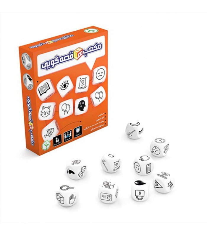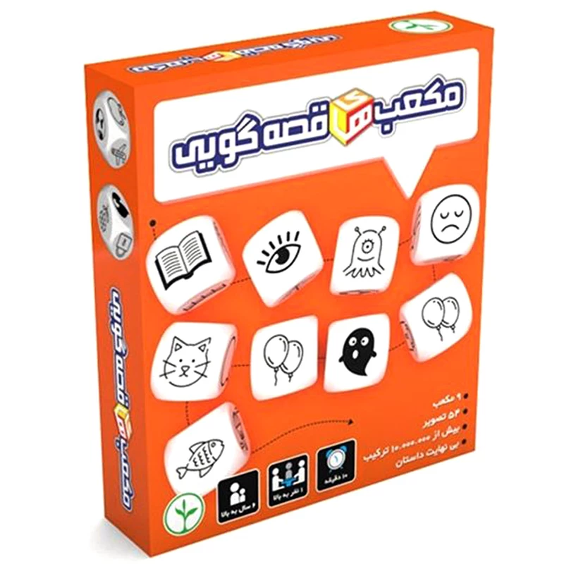 مکعبهای قصهگویی مجموعهای شامل ۹ تاس است که روی هر وجه از آنها تصویر متفاوتی نقش بسته است. با کمک این ۹ تاس و با ورد جادویی «یکی بود، یکی نبود …» دریچهای از دنیایی پر از تخیل و خلاقیت به روی شما گشوده میشود. با مکعبهای قصهگویی میتوان به روشهای بسیار گوناگونی بازی کرد و بر توانش زبانی، دایرهی واژگان، قدرت قصهگویی و بیان احساسات خود افزود. این بازی علاوه بر ایجاد فرصتی شاد و مفرح برای دورهمیهای خانوادگی، میتواند در کلاسهای انشاء و همچنین جلسات درمانی اختلالات گفتاری و عاطفی مورد استفاده قرار گیرد.