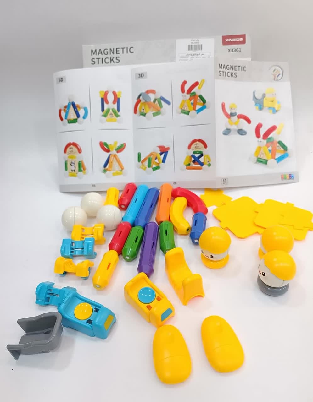 - 45 قطعه میله مغناطیسی رنگارنگ 🌈