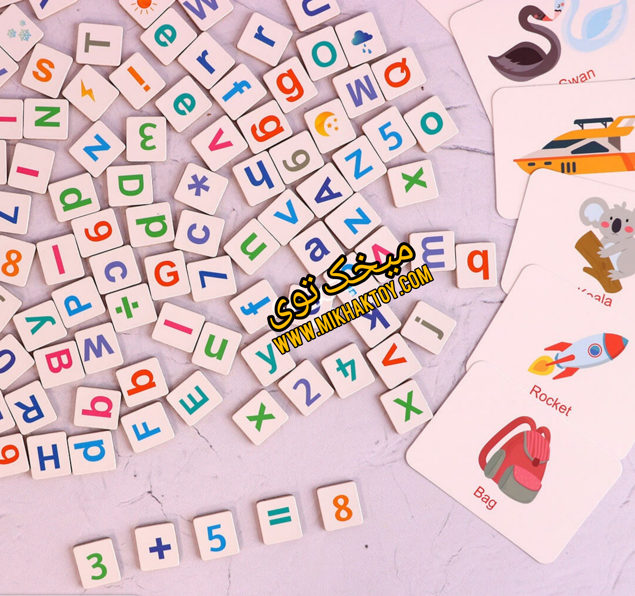 این پک آموزش زبان انگلیسی حروف چوبی مگنتی داره که هم حروف بزرگ همراهش هست هم حروف کوچیک و هم اعداد و علائم ریاضی.