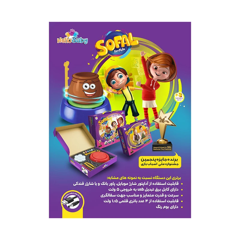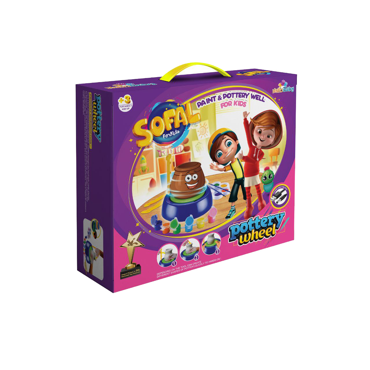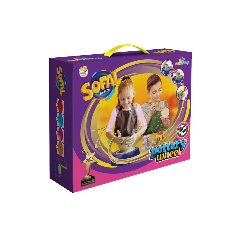 سفالگری یکی از قدیمی‌ترین صنایع بشر است و ظرف‌های سفالی، شاید یکی از قدیمی‌ترین ساخته‌های آدمی باشد. چرخ سفالگری کودک، محصولی با طراحی و کارایی بسیار جذاب و متفاوت برای کودکان است. کودکان می‌توانند با کار کردن با آن حس لذت و موفقیت را در طول روز تجربه کنند. این اسباب‌بازی با درگیر کردن ذهن کودک و ایجاد هماهنگی بین چشم و دست او سبب افزایش خلاقیت می‌شود. کار با چرخ سفالگری همچنین سبب بالابردن دقت و تمرکز کودک و ایجاد حس اعتماد به نفس در او می‌گردد. چرخ سفال گری با استفاده از 4 عدد باطری متوسط 1.5 ولت با قابلیت تنظیم سرعت در دو حالت تند و کند کار می‌کند همچنین امکان استفاده از آن بوسیله آداپتور شارژ موبایل ، پاور بانک یا شارژر فندکی نیز وجود دارداین محصول بعد از انجام کار به راحتی قابلیت تمیز شدن را دارد. در درون بسته این محصول خاک و رنگ وجود دارد که کودک شما با استفاده از آن ها می تواند زمینه شکوفا کردن استعداد خود را آغاز کند. این محصول در سایز استاندارد مناسب کودکان و وزنی سبک با طراحی منحصربفرد و خاص از پلاستیک فشرده که هیچ گونه ضرری برای کودکان شما ندارد ، ساخته شده است.