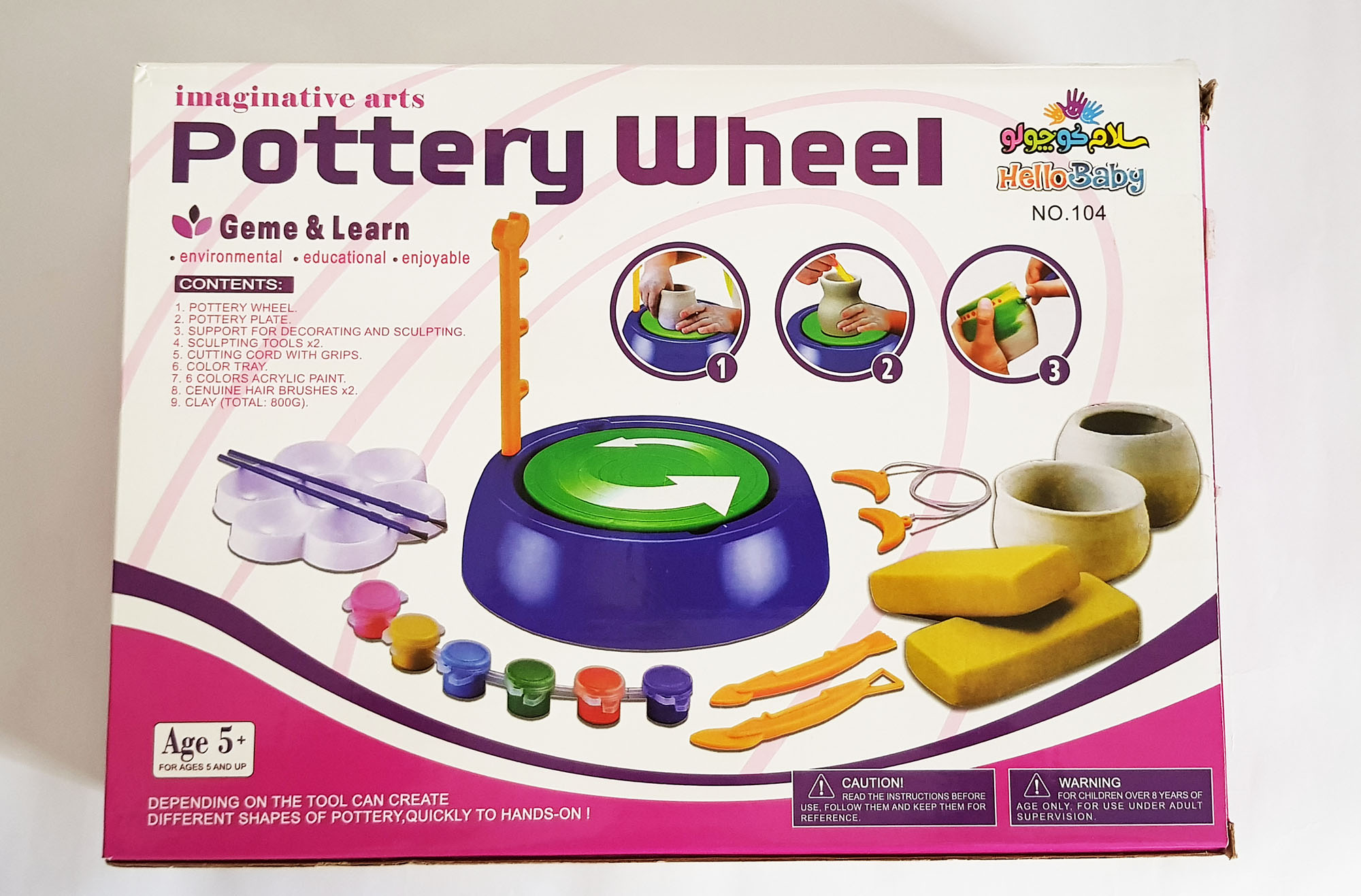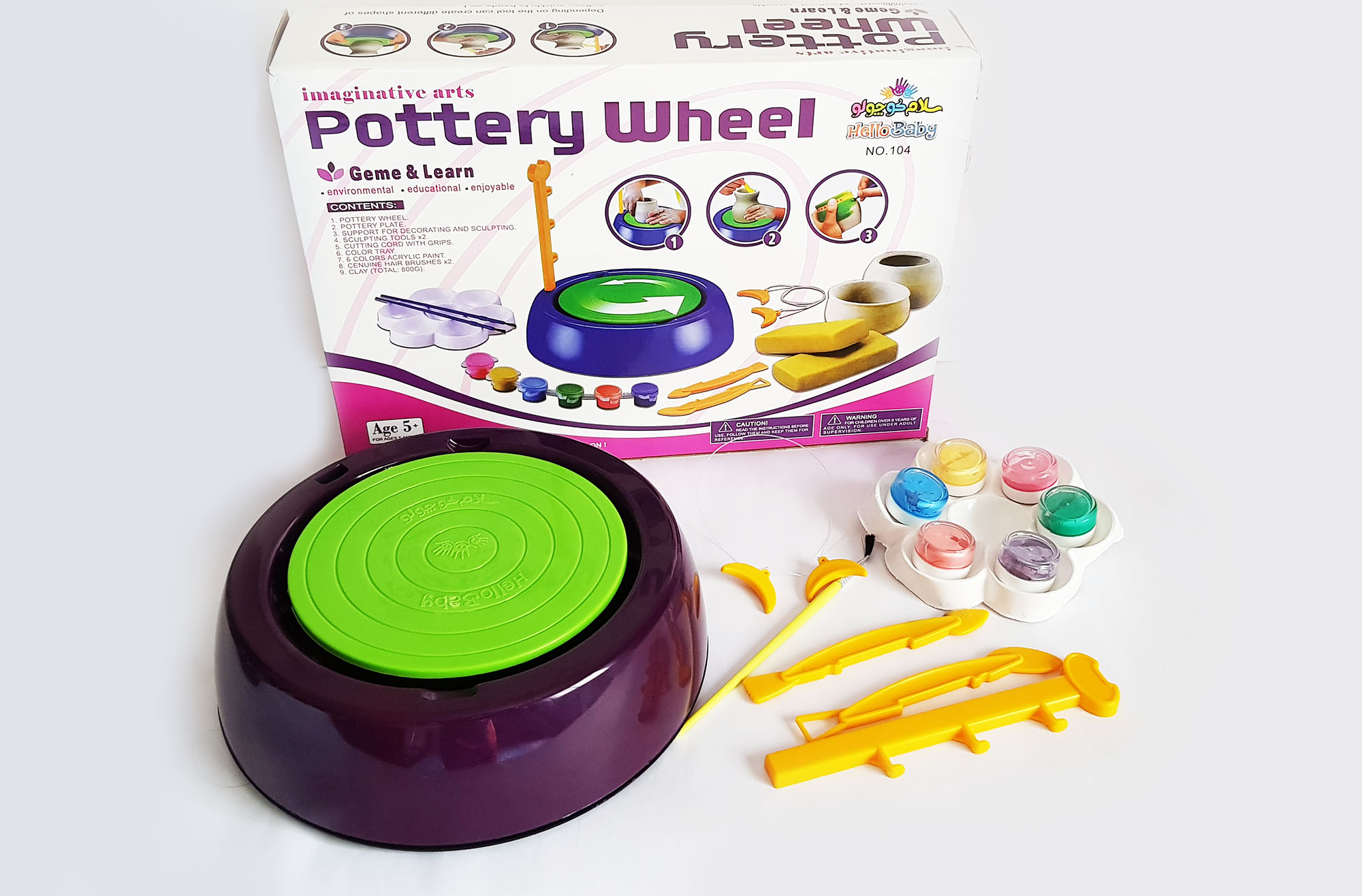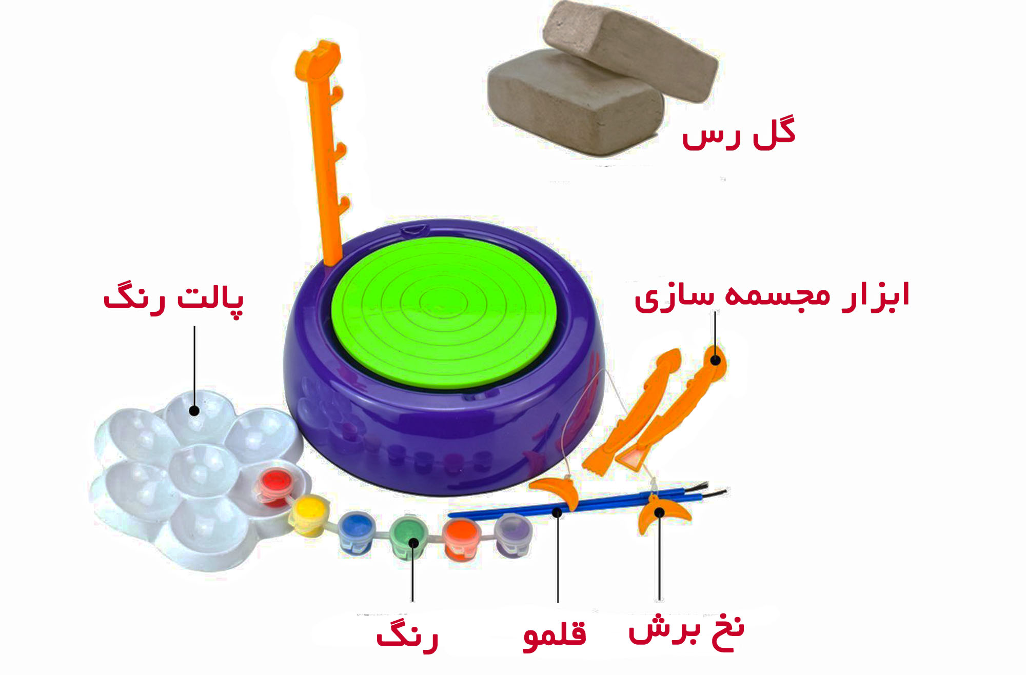 دستگاه سفالگری کودک یک بازی هنر و خلاقیت می باشد. این دستگاه نیاز به 4 عدد باطری قلمی دارد. شبیه همان دستگاههای سفالگری قدیمی است که برای ساخت ظروف گلی از آن استفاده میکردند. باطری ها را در دستگاه قرار داده ، مقداری گل سفالگری را روی دستگاه بگذارید دستگاه را روشن کنید گل بر روی صفحه شروع به چرخش می کند اجازه بدهید کودک با ذوق و سلیقه ی خود گل را شکل دهد او می بایست با دست هایش گل را فرم دهد. گلدان ، کوزه ، لیوان ، کاسه و یا هر شی ء دیگری که کودکتان بدان علاقه مند است. از ابزار پلاستیکی که داخل جعبه وجود دارد برای فرم دادن و ایجاد نقش بر روی گل استفاده می کنند. بعد از اینکه شی ء مورد نظر ساخته شد با سیم برش آنرا برداشته و در فضایی که هوا جریان دارد، قرار دهید یک روز صبر کنید تا خشک شود و سپس با استفاده از رنگ و قلم موهایی که درون جعبه موجود است کودک می تواند محصول ساخته شده توسط خودش را رنگ آمیزی و نقاشی کند. کثیف کاری و اشتباه کردن جزئی از بازی های کودکان است که باعث کسب تجربه و اعتماد به بنفس کودک می شود. با حساسیت های زیاد جلوی این روند طبیعی و آموزنده را در کودکان نگیریم