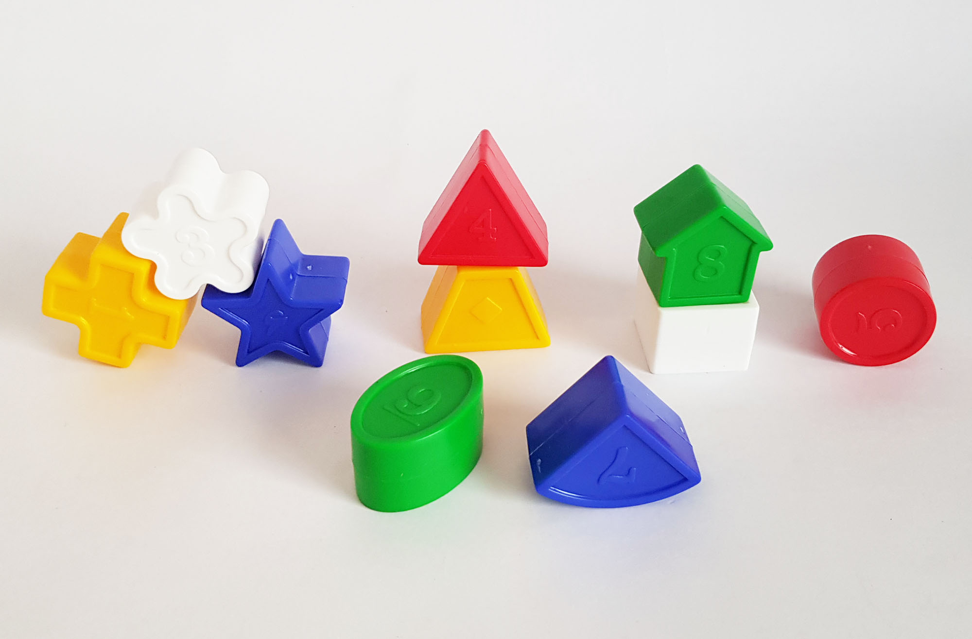 - ده قطعه ی پلاستیکی رنگی در شکل و رنگهای متفاوت
